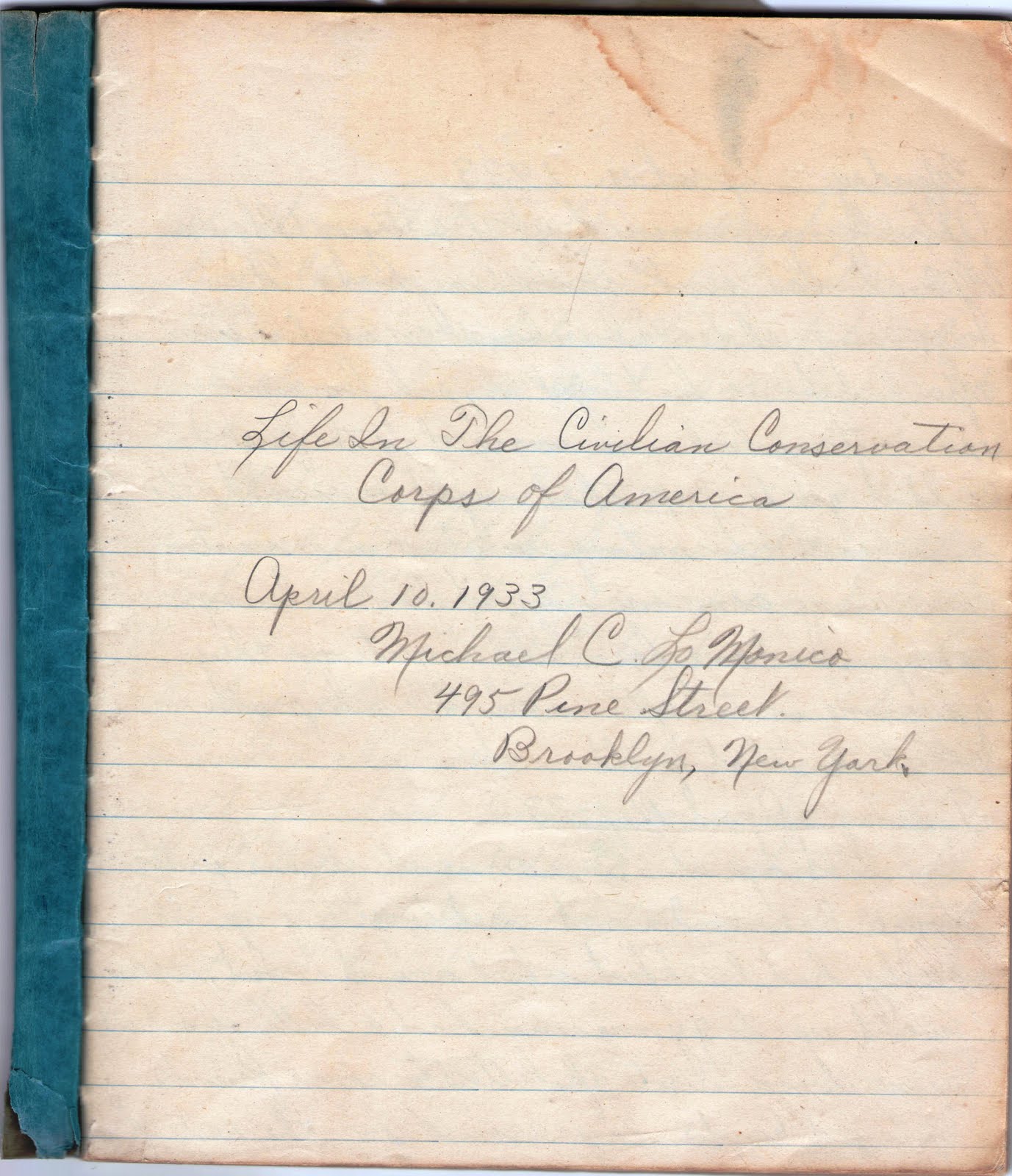 In April 1933, my father, Michael Charles LoMonico, entered the Civilian Conservation Corps of America. Over the next few months, I will be posting his entries which describe his experiences.